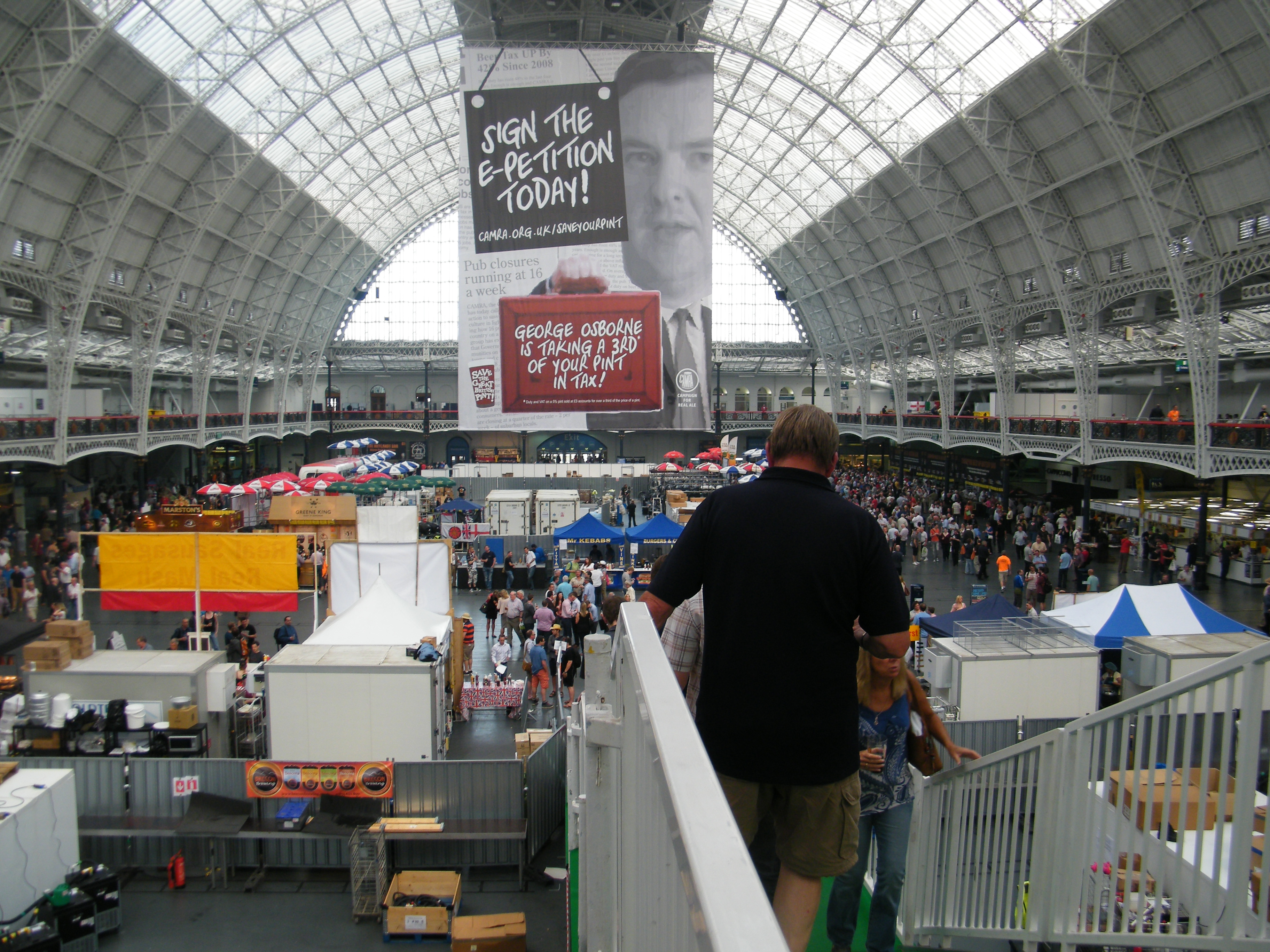 This year the GBBF shifted locations from Earls Court – apparently the World Tiddlywink Championships were taking place the same week – to Olympia. A grand structure, standing at 115ft high and just shy of an acre in size (thank you Wikipedia), the first thing that strikes you is the sheer scale of the festival. You get an immediate sense that every single pub you’ve ever been to has suddenly been rammed into one hoppy kingdom of barrels, bellies and crusty bar-limpets, who stare briefly, glassy-eyed, at the appearance of a newcomer, before returning to their latest copy of the CAMRA regional mag. And the beer – oh, the beer. More than you could ever have imagined existing, and all right in front of you, waiting patiently to be consumed. The accompanying programme alone, with its extensive tasting notes, is more like a short novel, and to the uninitiated it can be a daunting prospect. My advice is to come up with a system. You could choose only beers that start with the letter R, or beers that can be somehow linked to Kevin Bacon. I chose ones with animal-related names. The links became increasingly tenuous as the evening wore on.