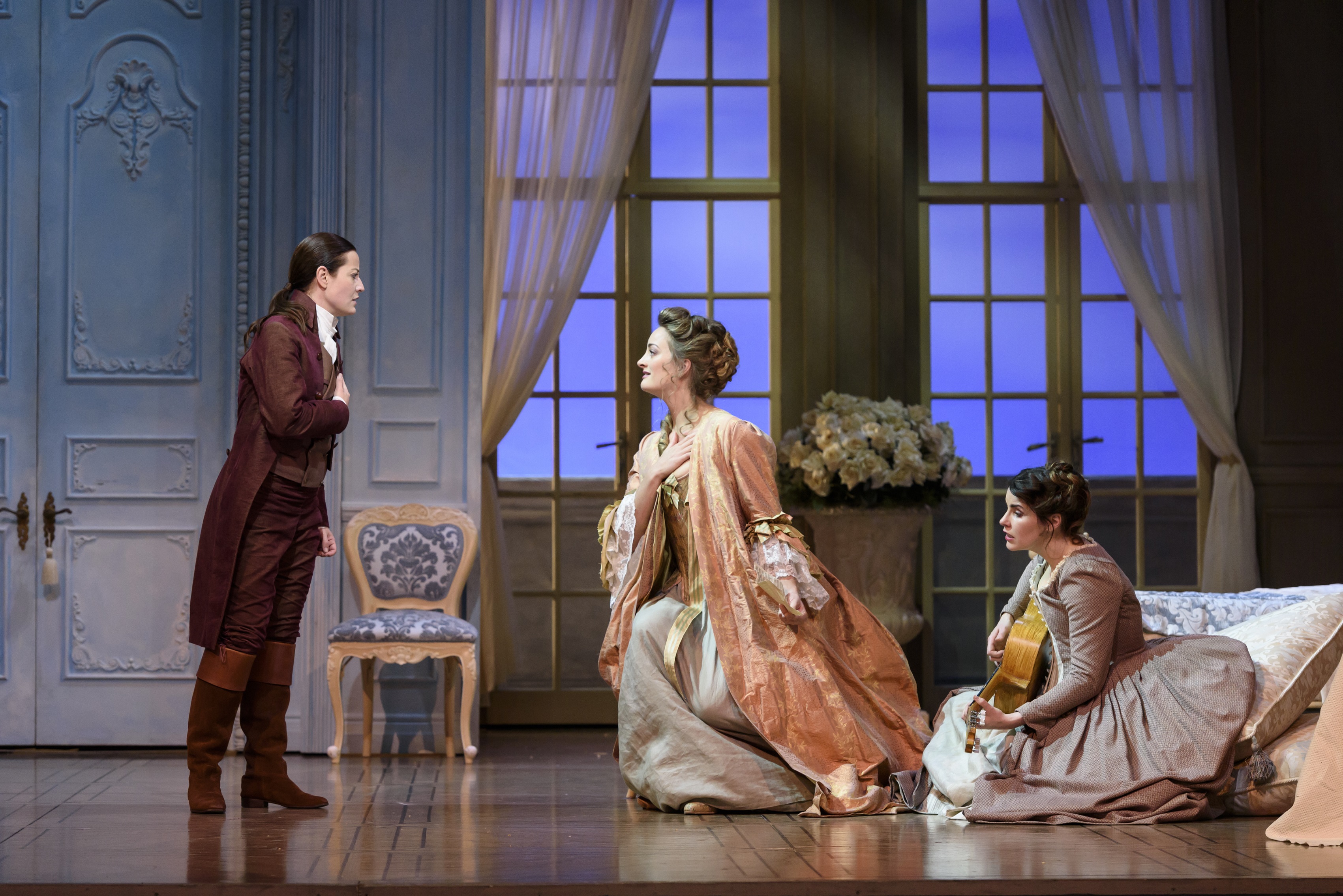 From the brilliant opening where the Count’s mansion is assembled before our eyes, to the Countess’s bedroom that seemingly resides up in the clouds yet fails to shield her from the worldly problems resulting from her husband’s inane desire to cheat, to the final act’s immaculately constructed starry night scenery, this is truly a work of visual art as well as an exceptional auditory experience. The costumes were inspiring and their design was used to express certain traits possessed by the characters. The long, clean lines of Don Basilio’s Chanel-like suit emphasised his sass and sprezzatura, while the Count donned a striped, robe-like overcoat that added to his pre-established characterisation as a prowling creep.