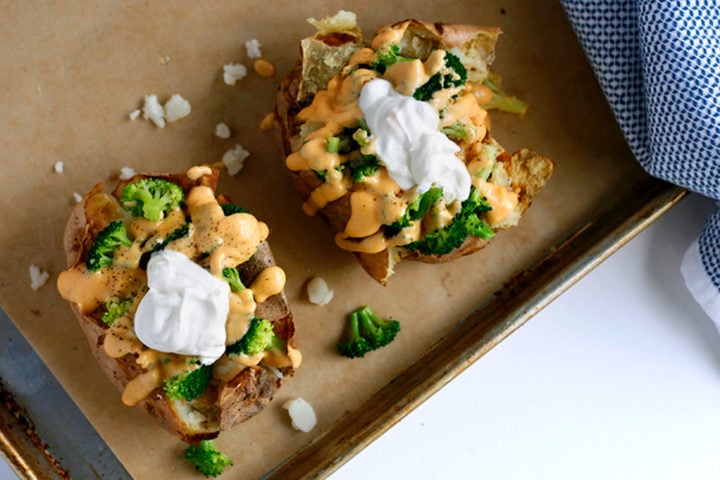 - Roast in the oven for around 20 minutes (you can do this while your potato is baking!)