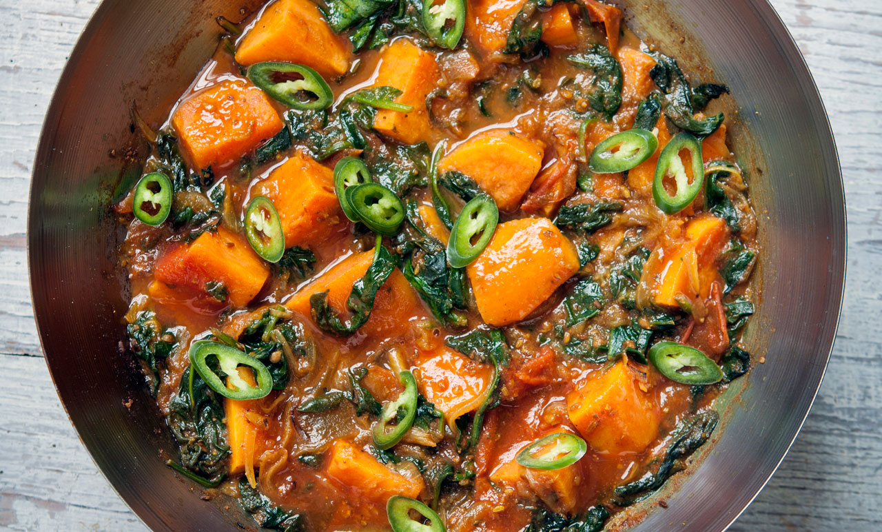 - Bring to the boil, then lower to a simmer. Cover and cook the sauce until the sweet potato has softened.