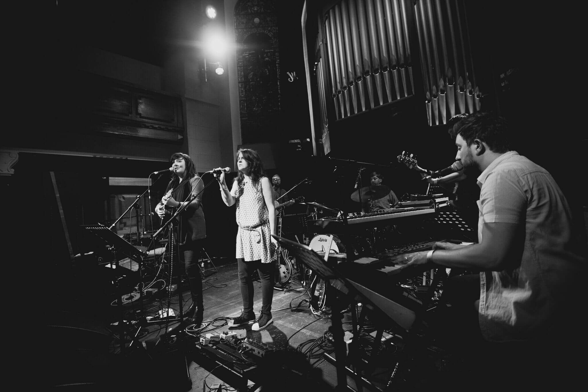 The night is punctuated between songs from the album, songs written as responses to the album, and poetry. Between the slow and booming ‘Frank’s Song’, by Rachel Sermanni and poetry about masculinity and mental health from Leyla Josephine, to otherwise upbeat, reflective tracks from indie favourites including Pronto Mama and Admiral Fallow, Distant Voices houses everyone. This is emphasised by the volume of people on stage – apart from solo performances, there’s at least seven people at any one time.