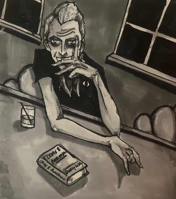 ‘I’m the Gianni Agnelli of Glasgow’ claims the ghoulishly gaunt, and glaringly greyish, forty-six-year-old man sat perched like a gargoyle … More